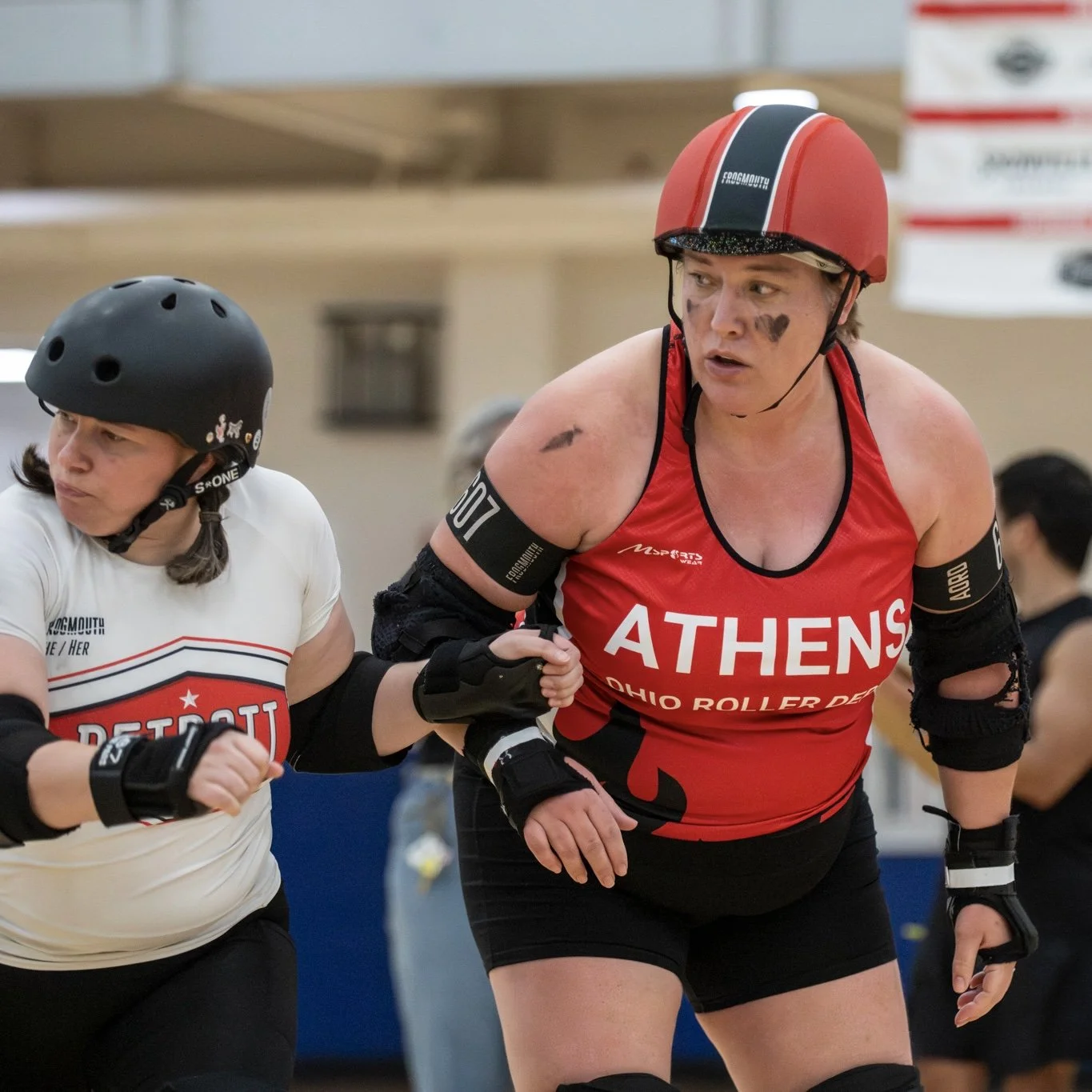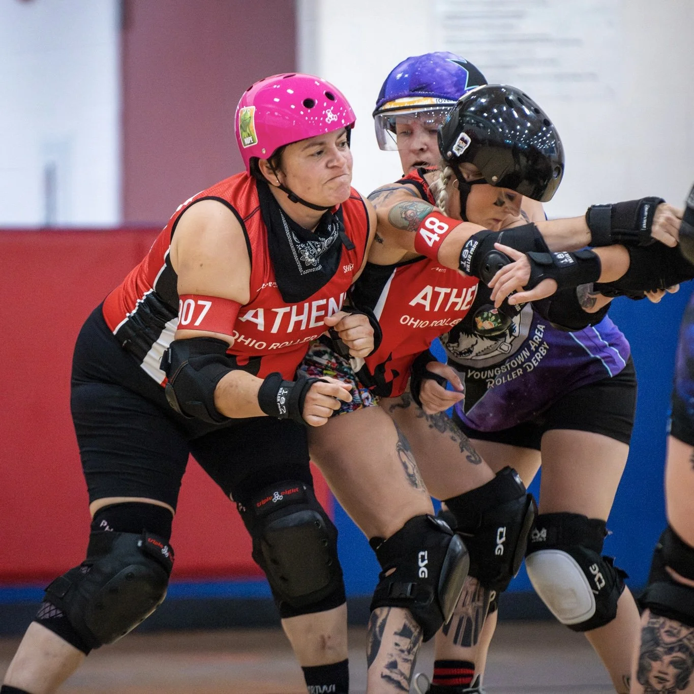 Blockers are simultaneously focused on stopping the opposing Jammer from passing them and assisting their Jammer to pass the opposing team’s Blockers. The pack is formed by the largest group of Blockers with players from each team on the track.