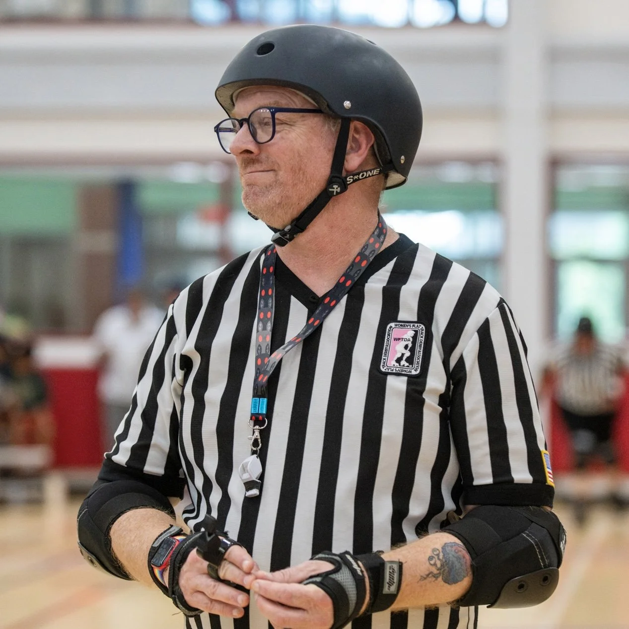Referees otherwise known as Skating Officials are a huge part of Roller Derby. Referees wear skates, protective gear, and are easily identified by their black and white striped shirts. They are often nicknamed the Zebras of the sport due to their jerseys. Typically there are five to seven referees participating in each game, but roller derby can happen with as few as three referees; seven is considered a full crew.